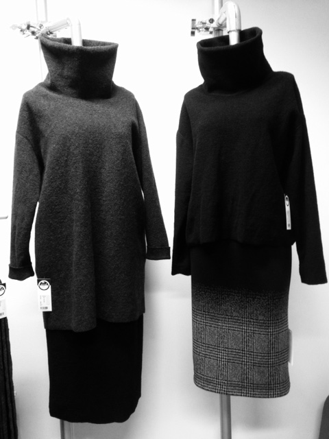 Idag har jag tagit med en ny, riktigt lång grå ulltröja till Fashion Gallery. Den är tillverkad av 100% merinoull, stickad och valkad. Den har fått namnet ”Helene Polo Maxi”. På bilden ser du även ”Helene Polo” i svart ull. Kanske något att krypa in i när kylan slår till?