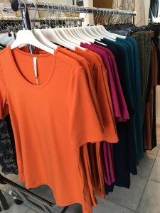 I den första leveransen har vi fått A-formade T-shirts och en rak, vid tunika med smal ärm. Materialet är bambu med lite elastan. Bambu är ett bra miljöval och tyget är mjukt, andas och är naturligt antibakteriellt. Välkommen in för en närmare titt!