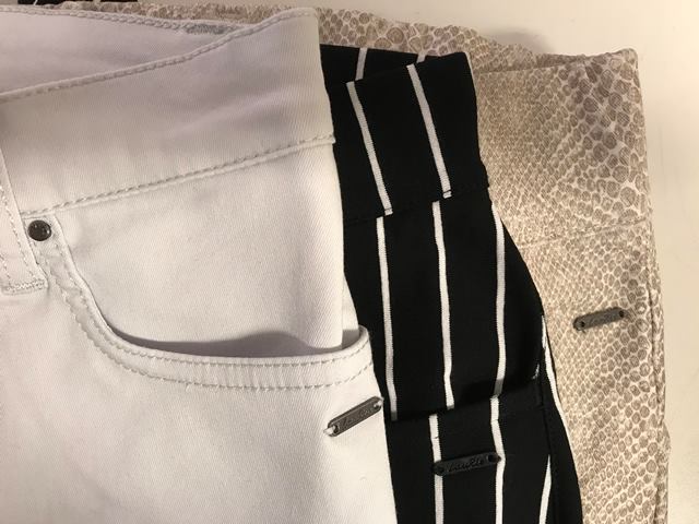Nu har andra kartongen med vårens byxor från LauRie kommit! Här finns något för alla: randigt, ormskinnsmönstrat och enfärgat i en ny ljus färg. Vilken blir din favorit? De randiga blev kvar på mig (Kajsa) efter provningen! Supersköna i mjukt trikåtyg och lite vidare modell.