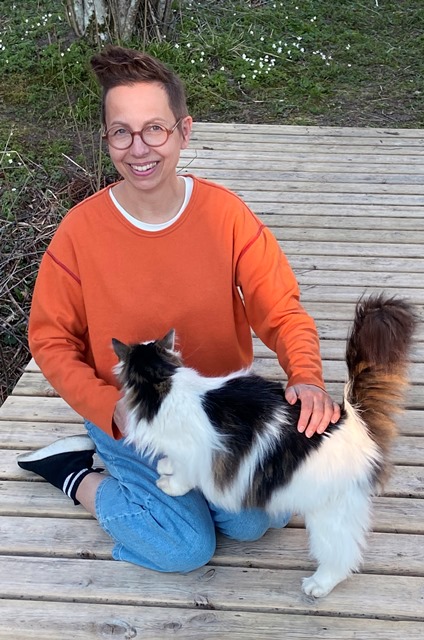 Nu har vi gjort en ny modell som vi sytt upp någar exemplar av i tunn, orange, slätstickad merinoull.