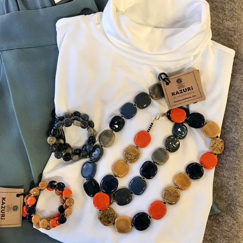 Kazuri är ett företag som grundades 1975 i Kenya för att ge ensamstående kvinnor möjlighet till egen försörjning. Keramiksmycken tillverkas av lera från området Mount Kenya. Varje pärla formas och målas för hand för att sedan glaseras och brännas. Idag har företaget ca 300 anställda kvinnor som vi gärna bidrar till att hjälpa. Unna dig ett vackert smycke och bär det med extra stolthet för tillsammans gör vi skillnad!
