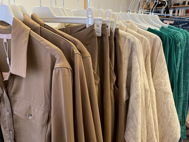 Fina, lite lagom dressade plagg i sköna material och en färgskala som går från natur till smaragdgrönt.