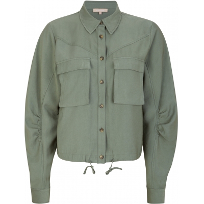 Är du sugen på ett helt set så finns byxa och skjortjacka med bälgfickor i en härlig grön färg.
