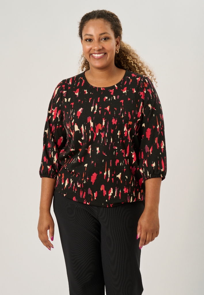 Nu har vi fyllt på med byxor från Pont Neuf, både i svart och en ny plommonlila färg. Det här är en riktigt bekväm byxa som man ändå ser välklädd ut i. Materialet är en kraftig jersey av 65% viskos, 30% polyamid och 5% elastan. Hög midja med resår, fickor fram och 7/8-längd. Är man kort blir den hellång och det är också snyggt. Vi passade även på att beställa några fina toppar med svart botten och print i härliga höstfärger.