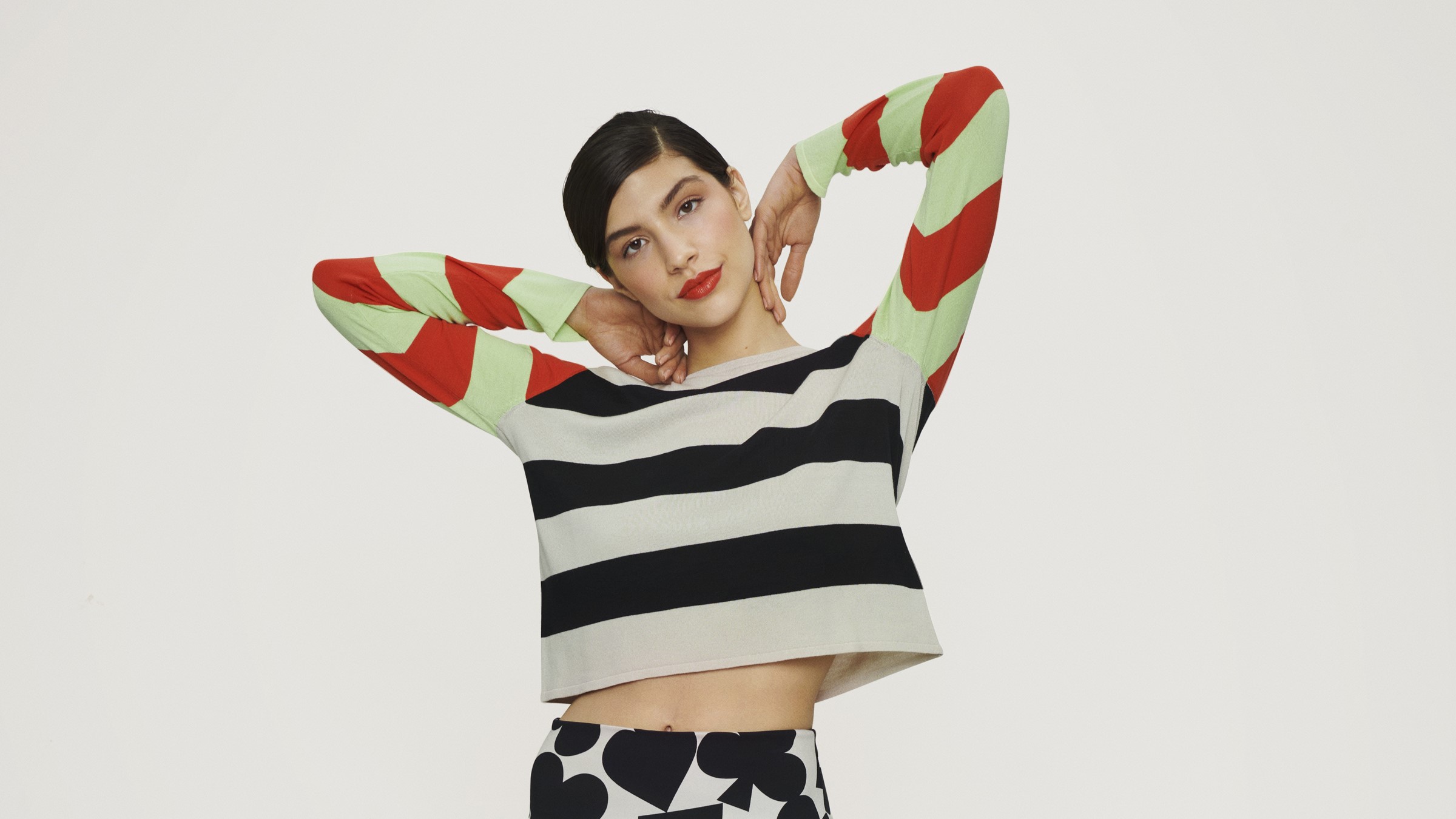 Färgerna på bilderna stämmer inte helt med verkligheten, det som ser vitt ut är i verkligheten ljust beige. Kjolen är av lin och jumprarna av en finstickad viskosblandning. Supersnyggt att möstermixa för den som vågar! Det är också fint att kombinera de mönstrade plaggen med enfärgat svart eller beige.