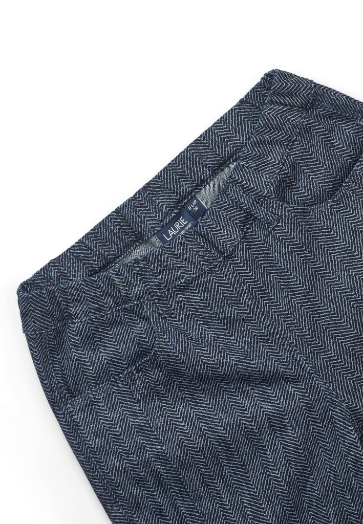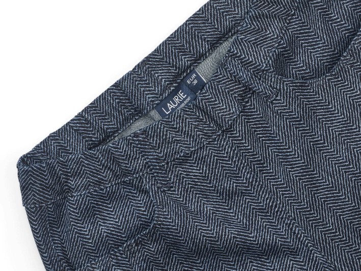 Höstens första byxor från LAURIE är här! Det är två olika modeller i ett snyggt fiskbensmönstrat tyg i jeansblått/ svart. Materialet är stretchigt och består av 90% ekologisk bomull, 6% polyester och 4% elastan. En riktigt skön kvalitet som är lite varmare än sommarens viskos-kvaliteter.