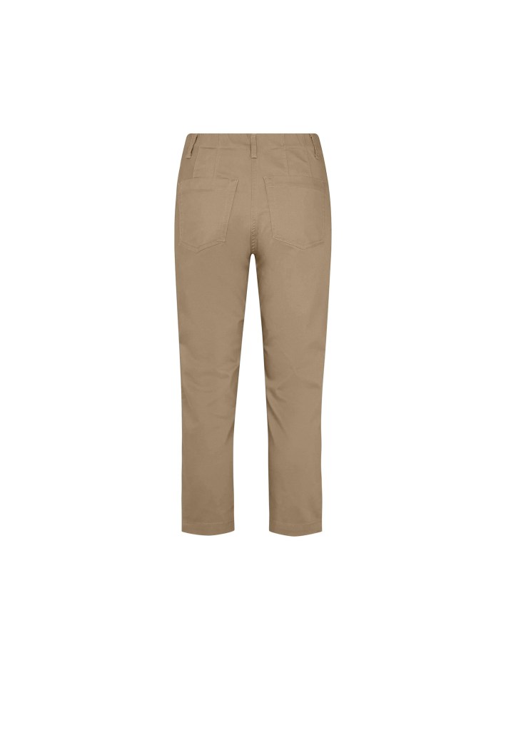 Det finns två olika modeller i samma sköna bomullsmix med stretch. Charlott är en hellång 5-ficksmodell med gylf och linning (regular fit). Patricia Pure är också en 5-ficksmodell (regular fit) men i 7/8-längd och med resårmidja. Färgen är riktigt snygg och passar till mycket! Ljus men ändå inte så känslig för smuts.