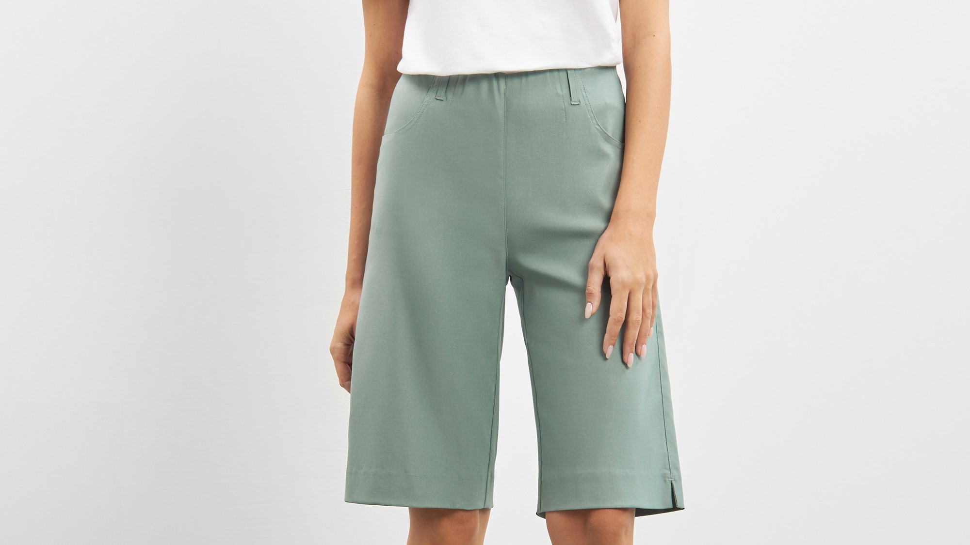 Cityshorts i den vidare modellen Donna, har kommit i vårens nya färg salviagrön och i svart.