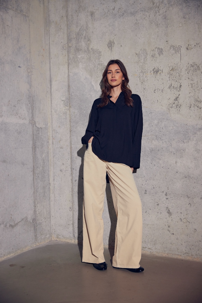 Nu har vi fått in den lite vidare byxmodellen Carol i ljus, smalspårig manchester. En skön kvalitet nu när det blir lite kallare. Carol har linning, gylf och fickor både fram och bak. Snyggt med en ljus byxa även till höst och vinter!