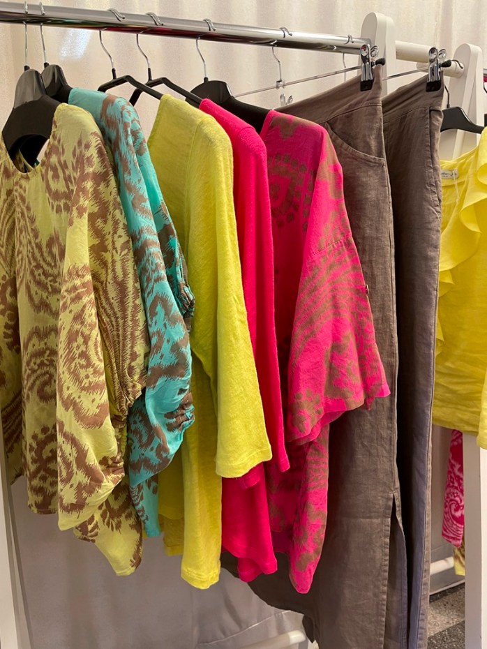 Nu har sommarplaggen från Blueberry Italia kommit! Färgskalan består av naturfärger mixat med citrongult, rosa och turkos, riktigt somrigt och härligt! Allt i sköna naturmaterial. Vänta inte för länge med att komma till butiken om du är intresserad, vi har inte så många av varje plagg. Butiken är öppen tisdag-fredag 12-18 och lördag 11-15. Här kommer ett litet smakprov: