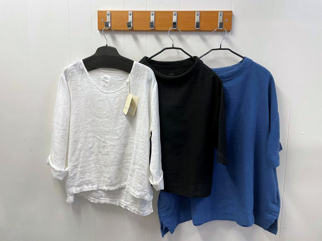 Nu har vi fått in toppar med trekvartslång ärm i härliga färger från danska Pont Neuf! Materialet är viskostrikå och tyget har en fin struktur. Den omtyckta byxmodellen ”Gea” från samma märke har nu kommit i vitt. Snyggt, skönt och användbart!