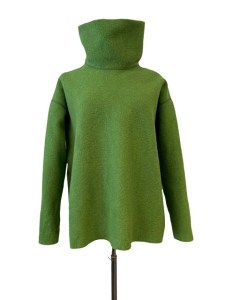 Vår populära tröja HELENE POLO är ”one size” på bredden men finns i tre olika längder: kort, mellan och maxi. Modellen är helt rak med nedhasad axel och rejält långa ärmar. Kragen är ganska vid och går bra att vika ner för en mer prydlig look. Den brukar passa om du normalt köper storlek S, M eller L. Omkretsen på tröjan är ca. 122 cm. Om man mäter från axeln precis brevid polokragen till plaggets nederkant så är den korta ca 56 cm, den mellanlånga ca 66 cm och den maxilånga ca 81 cm. Materialet är 100% merinoull, en frottéstickad och valkad, ganska tjock kvalitet. Tröjan är maskintvättbar på 30 grader ullprogram. De flesta färgerna är stickade av ekologiskt garn. Tjockleken kan variera något mellan de olika färgerna.